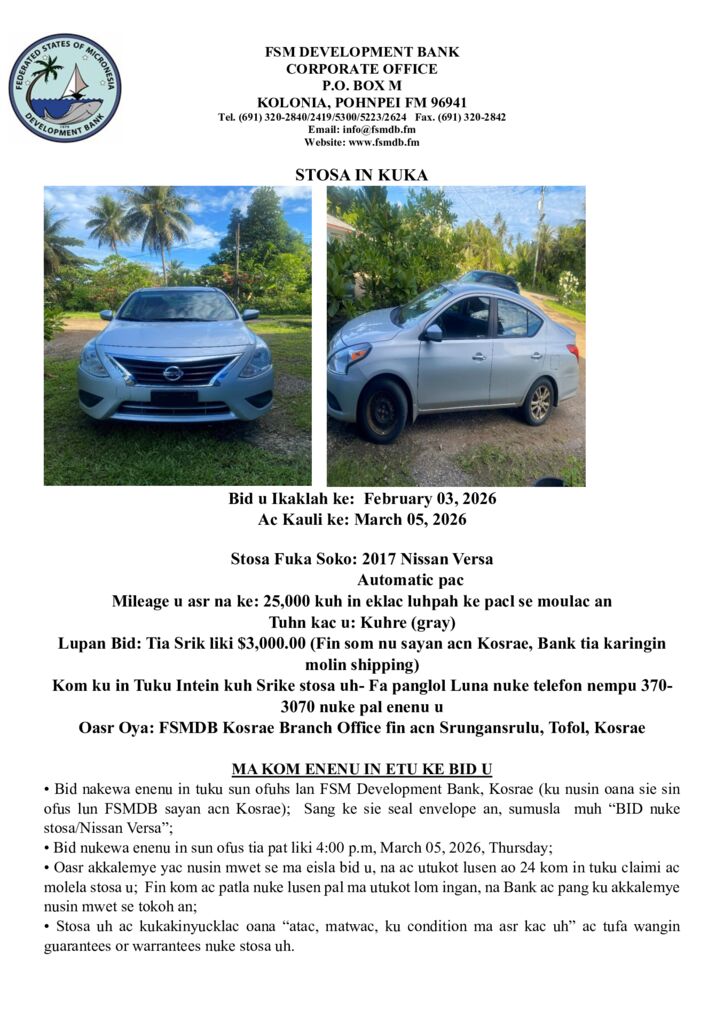 Feb 03, 2026 Posted by: Jem Carlo Category: All News, Chuuk News, Kosrae News, Pohnpei News, Yap News No Comments Share FSMDB NewsroomKosrae News Pohnpei News Chuuk News Yap News Land and Buildings Vacancies how can we help you? Contact us at any of our FSMDB branch offices for immediate assistance. Contact Us